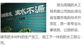 湖北雨睛防水工程有限公司地處湖北宜昌高新技術(shù)公司獲得了國(guó)家質(zhì)量管理體系認(rèn)證證書(shū),也取得了湖北省建筑防水材料專(zhuān)業(yè)協(xié)會(huì)會(huì)員資格;并榮獲了湖北省建設(shè)廳頒發(fā)的建筑施工貳......[更多]
